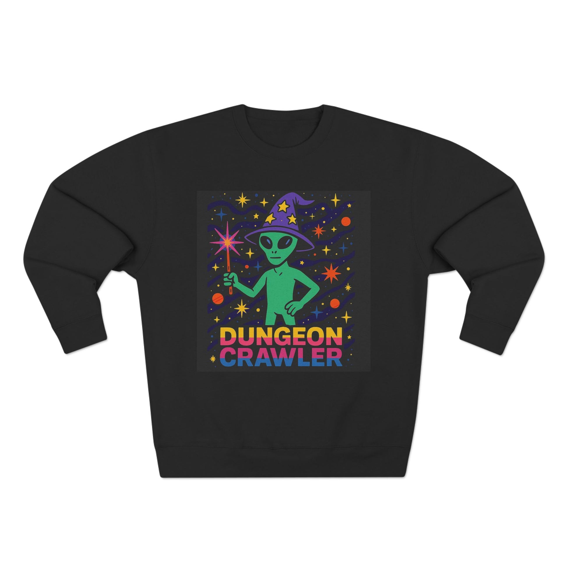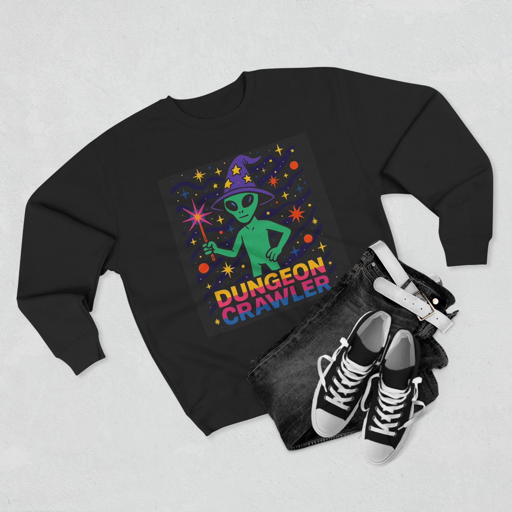 The Alien Mage D.C. Crewneck Sweatshirt mixes cosmic charm with dungeon energy in a bold, retro style. Featuring a neon green alien wizard surrounded by stars, planets, and swirling color, this piece brings sci-fi magic to your everyday lineup. Made from a premium cotton-poly blend, it delivers warmth, softness, and structure that lasts through every wear.