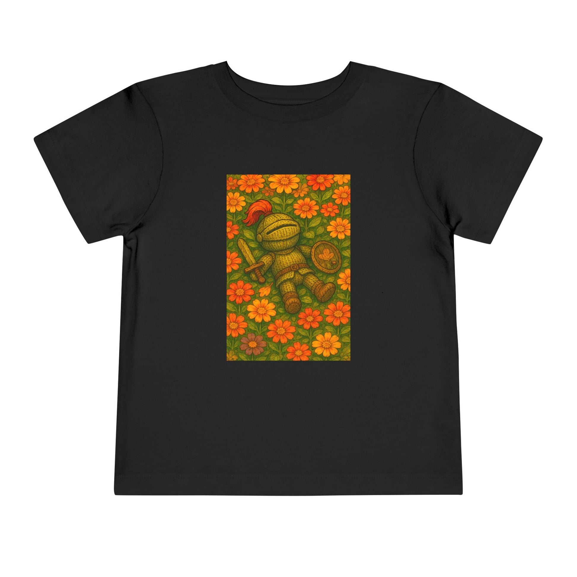 The Forgotten Guardian Toddler Tee captures the gentle courage of a tiny knight at rest. Featuring a warm, storybook illustration of a small armored hero surrounded by flowers, this design celebrates peace after adventure. Made from soft, 100% combed ringspun cotton, it’s lightweight, breathable, and perfect for everyday wear.