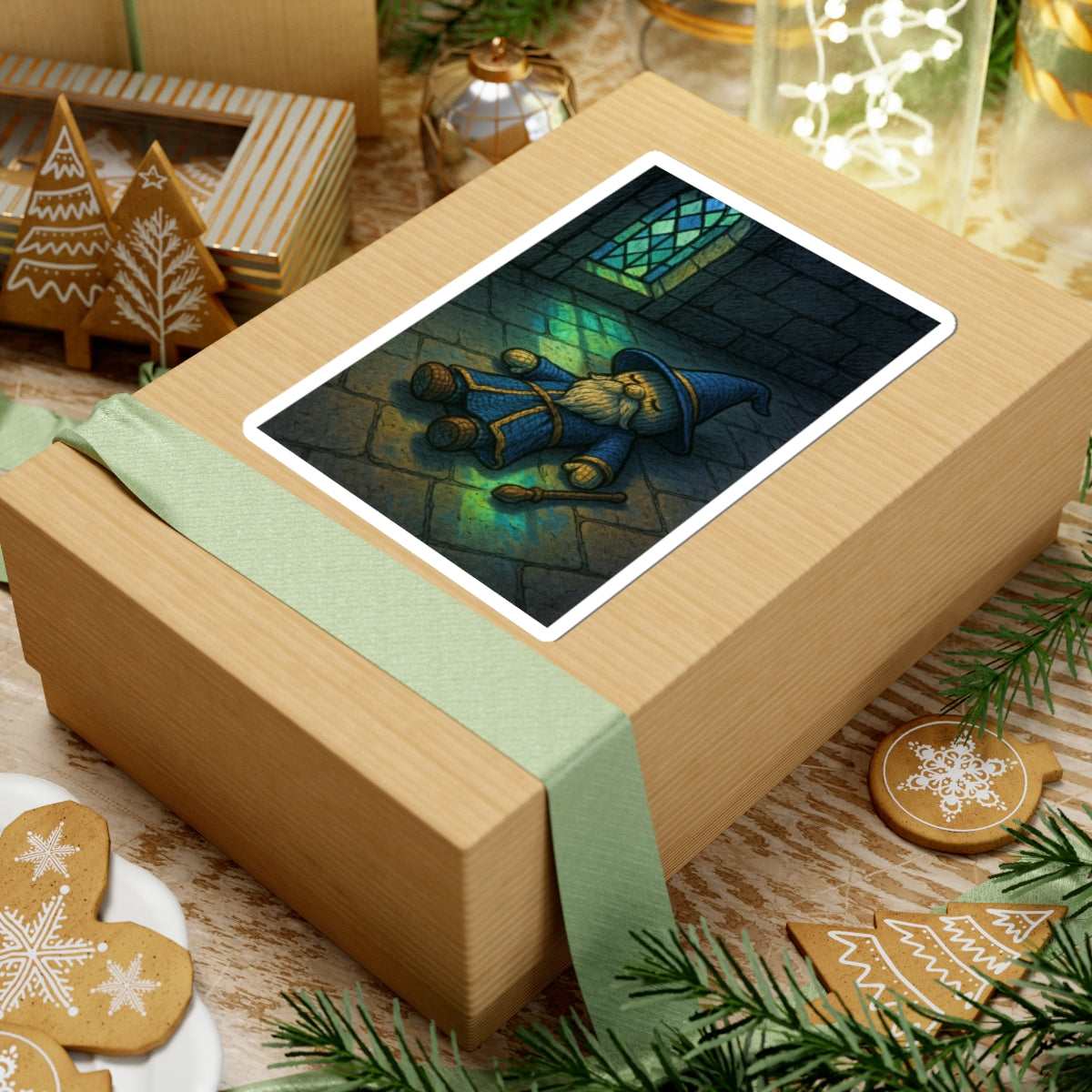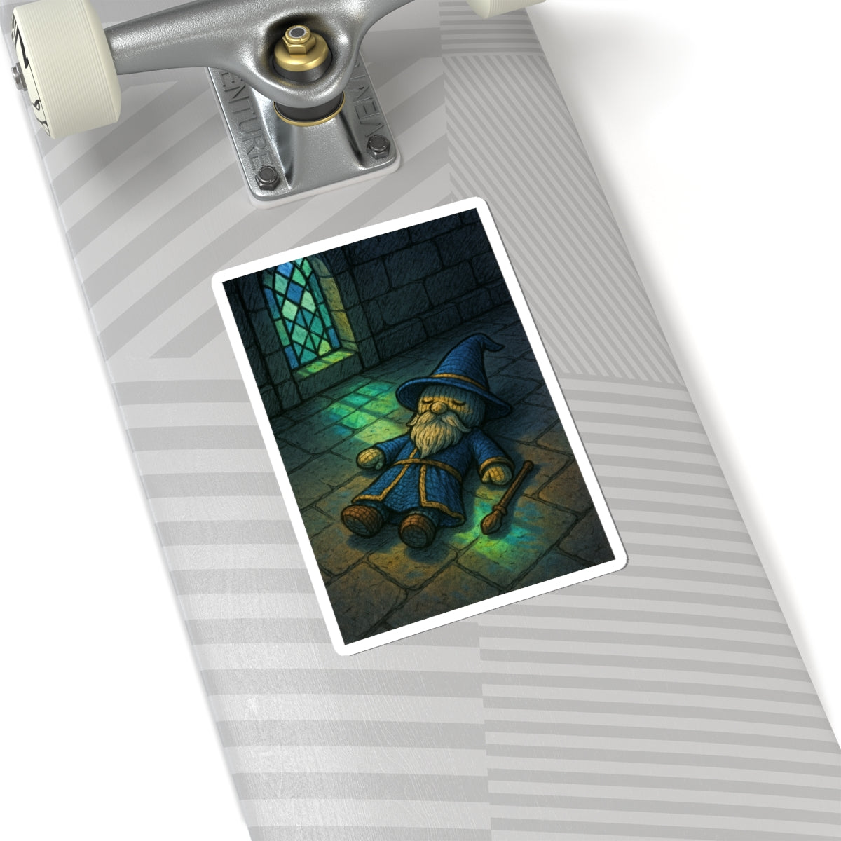 The Forgotten Mage Kiss-Cut Sticker brings quiet fantasy charm to any surface. Featuring a resting wizard surrounded by the glow of stained glass, this design captures a peaceful moment in rich, storybook detail. Made from high-quality vinyl with a smooth matte finish, each sticker is precision kiss-cut for clean edges and easy application.