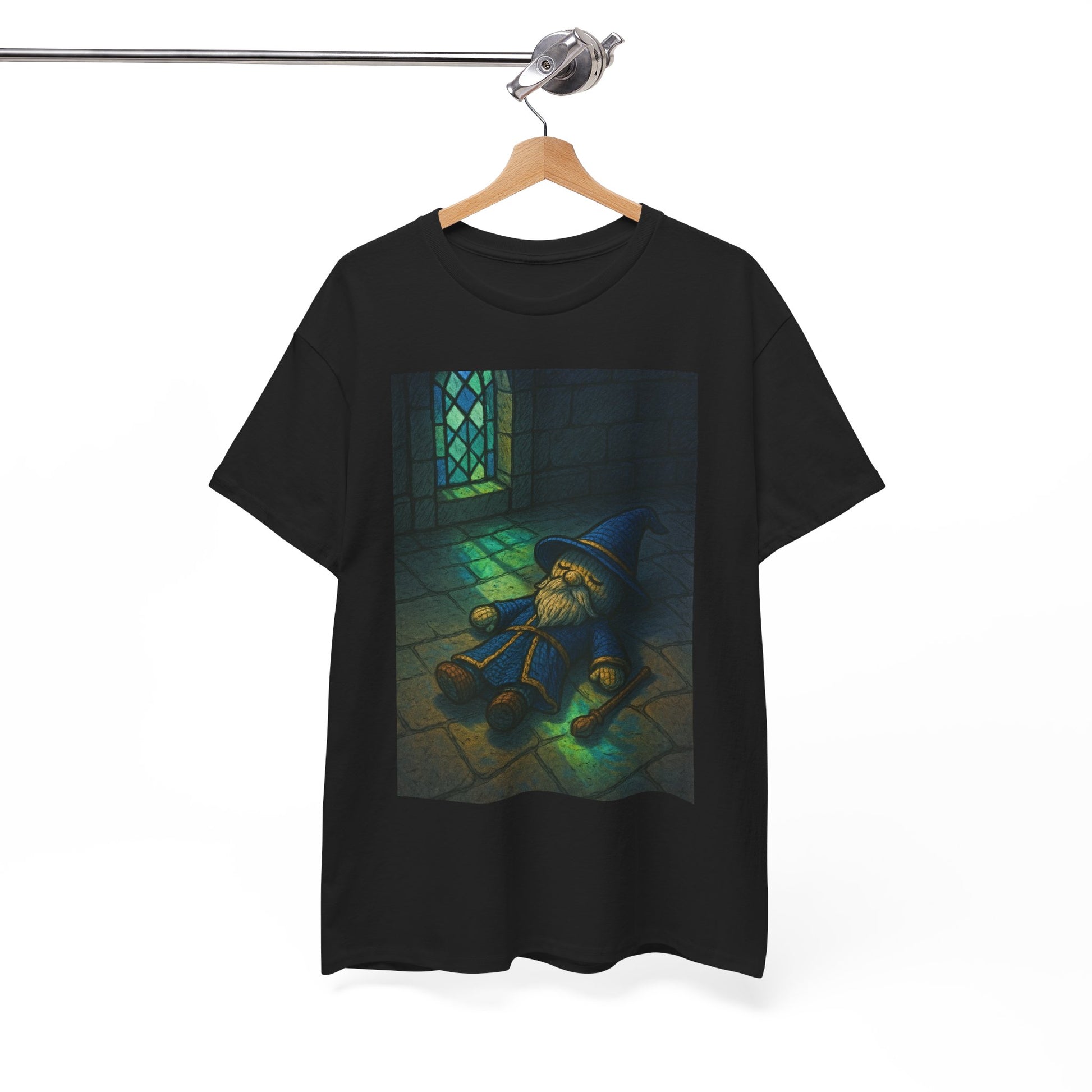 The Forgotten Mage Heavy Cotton Tee captures a moment of quiet magic and timeless calm. Featuring a soft, storybook illustration of a resting wizard bathed in stained-glass light, this design blends fantasy nostalgia with gentle charm. Printed in rich detail on 100% premium cotton, the shirt offers a smooth, structured feel that’s made to last.