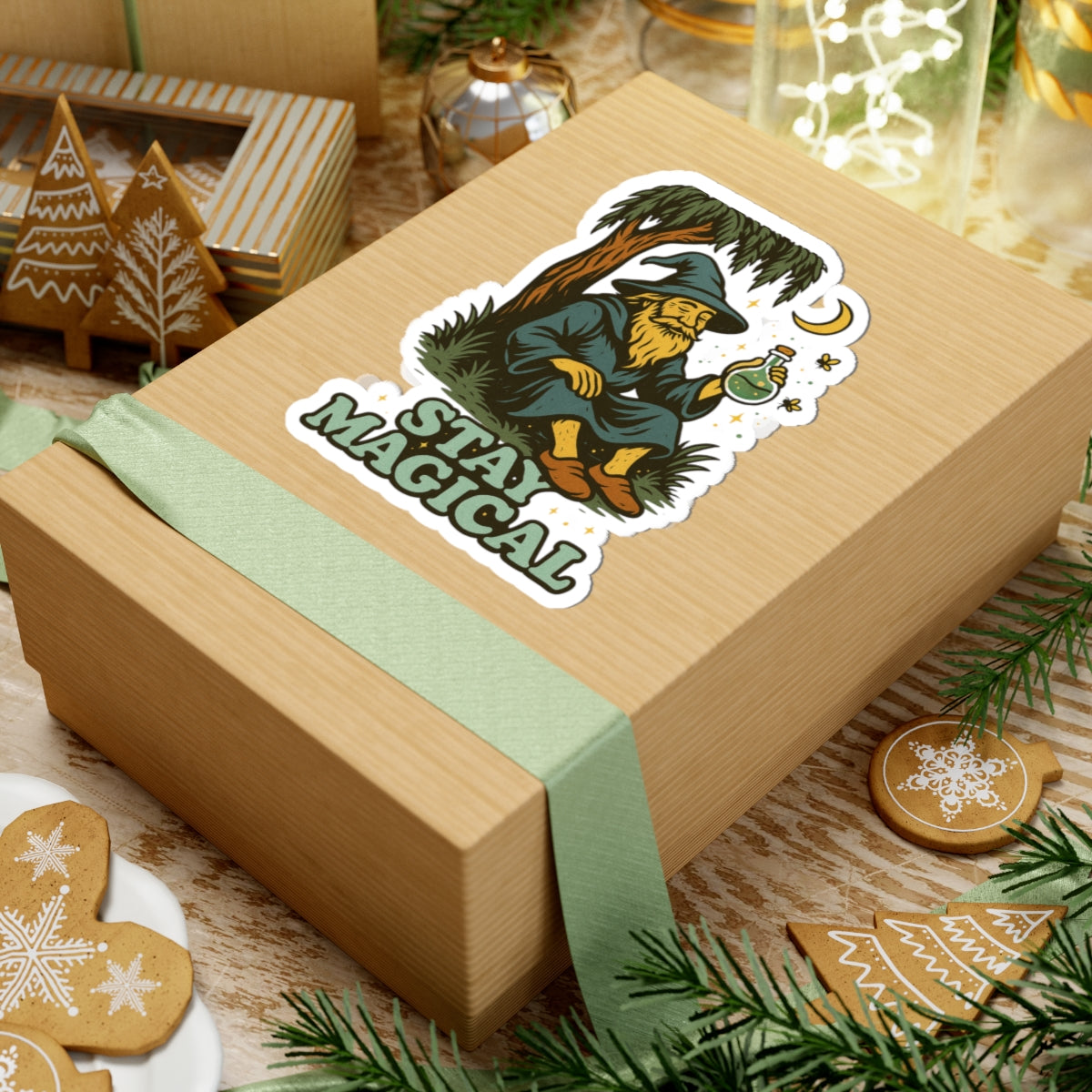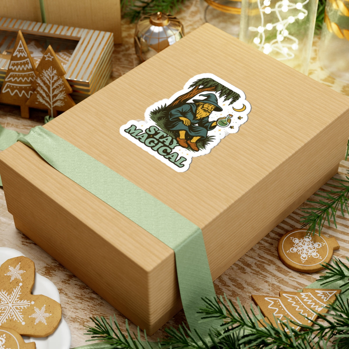 Add a little enchantment to your everyday gear with this Stay Magical sticker. Featuring a peaceful wizard lounging beneath a willow tree, potion in hand, it’s a vintage-fantasy nod to those who find serenity in the strange.