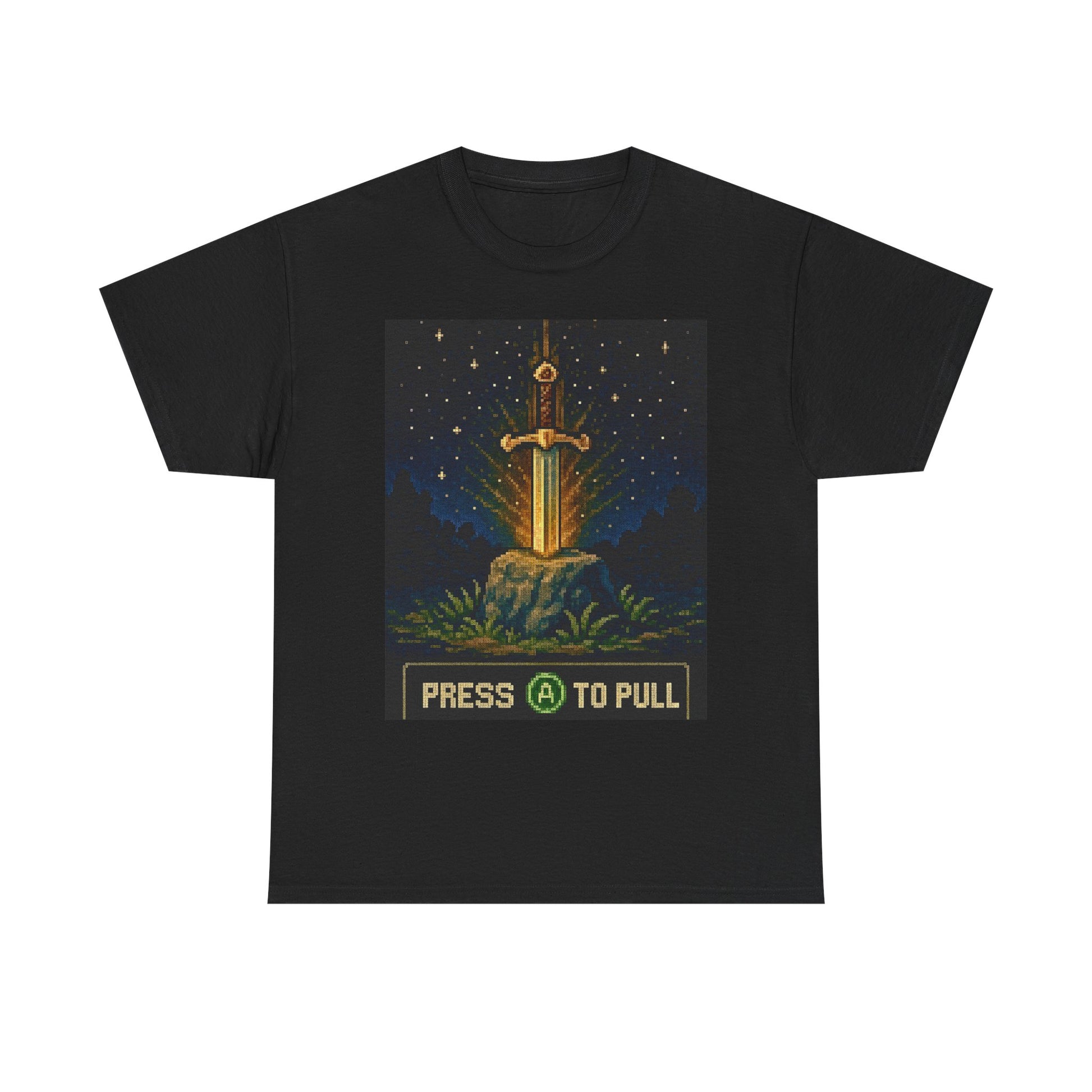 The Sword in Stone Heavy Cotton Tee brings classic fantasy and retro gaming together in one bold design. Featuring a glowing pixel-art sword waiting to be claimed, this shirt captures the spirit of adventure and nostalgia with every stitch. Made from 100% premium cotton, it offers a soft, structured feel that holds up through countless quests and washes.